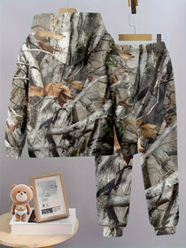 Boys' camo Hoodie and Jogger Set This two-piece ensemble combines tactical style with everyday comfort for active youth. The hoodie features a classic camouflage pattern with a drawstring hood and kangaroo pocket, while the matching joggers offer an elastic waistband and tapered cuffs for a refined silhouette. Constructed from durable, breathable fabric, this set transitions seamlessly from outdoor adventures to casual wear. The coordinated design ensures a polished look while maintaining the functionality young explorers demand.